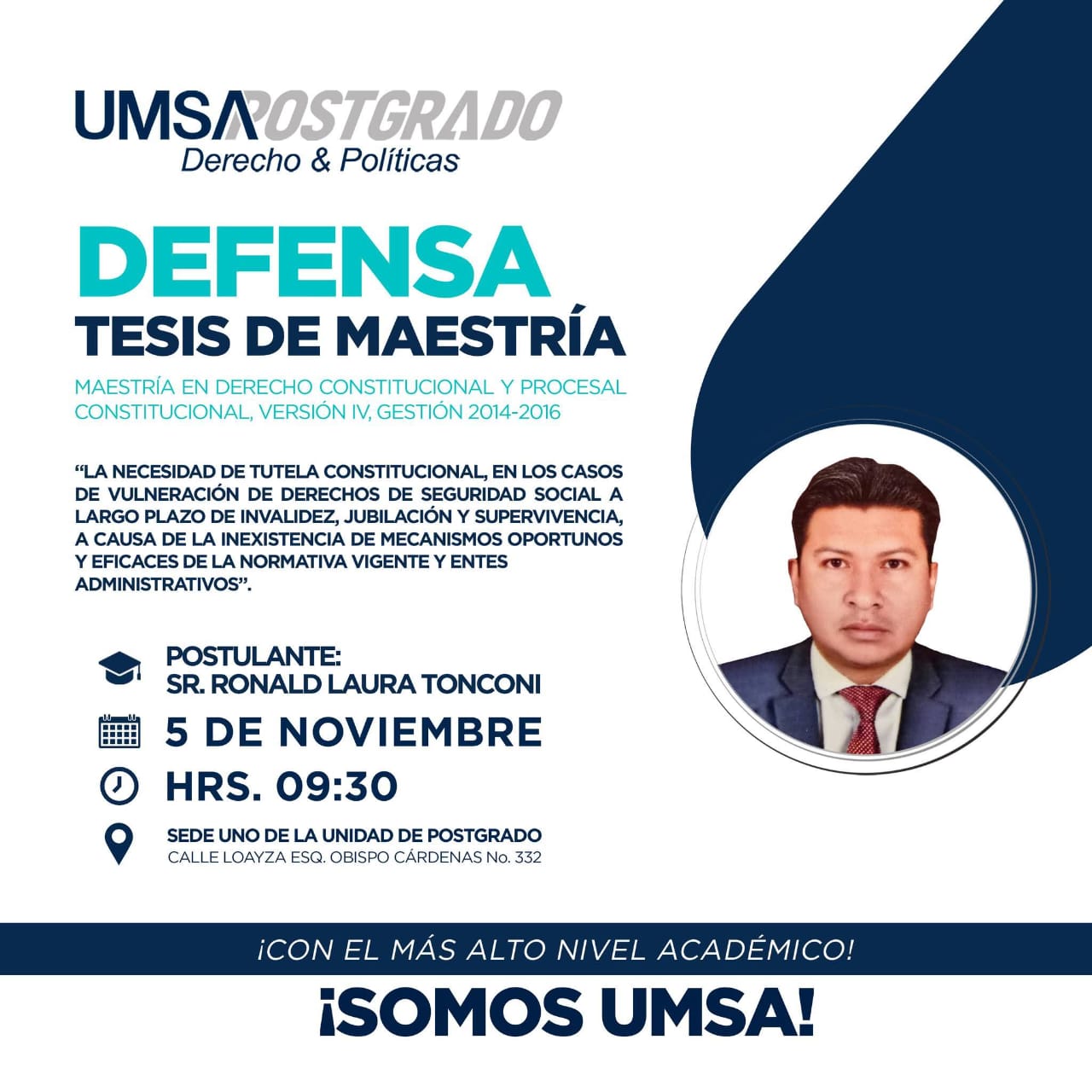 La ๐๐ง๐ข๐๐๐ ๐๐ ๐๐จ๐ฌ๐ญ๐ ๐ซ๐๐๐จ ๐ฒ ๐๐๐ฅ๐๐๐ข๐จ๐ง๐๐ฌ ๐๐ง๐ญ๐๐ซ๐ง๐๐๐ข๐จ๐ง๐๐ฅ๐๐ฌ extiende la invitaciรณn a la defensa pรบblica de Tesis de Maestrรญa del postulante: Sr. Ronald Laura Tonconi, en el marco del programa de ๐๐๐๐ฌ๐ญ๐ซ๐ขฬ๐ ๐๐ง ๐๐๐ซ๐๐๐ก๐จ ๐๐จ๐ง๐ฌ๐ญ๐ข๐ญ๐ฎ๐๐ข๐จ๐ง๐๐ฅ ๐ฒ ๐๐ซ๐จ๐๐๐ฌ๐๐ฅ ๐๐จ๐ง๐ฌ๐ญ๐ข๐ญ๐ฎ๐๐ข๐จ๐ง๐๐ฅ, ๐๐๐ซ๐ฌ๐ข๐จฬ๐ง ๐๐, ๐๐๐ฌ๐ญ๐ข๐จฬ๐ง ๐๐๐๐โ๐๐๐๐.